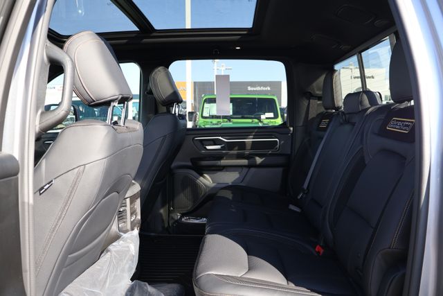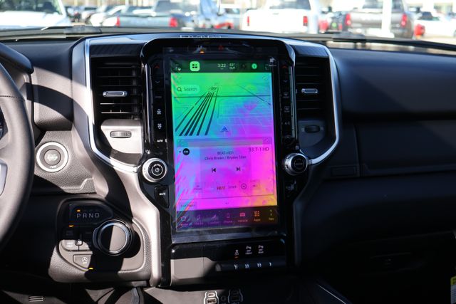 This 1500 Big Horn/Lone Star is meticulously equipped to elevate your driving experience. The Dual-Pane Panoramic Sunroof floods the cabin with natural light, creating an open and airy atmosphere. The Bed Utility Group, featuring a MOPAR Spray-In Bedliner and adjustable cargo tie-down hooks, ensures your cargo remains secure and protected.