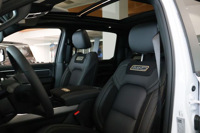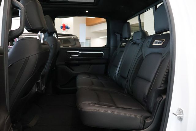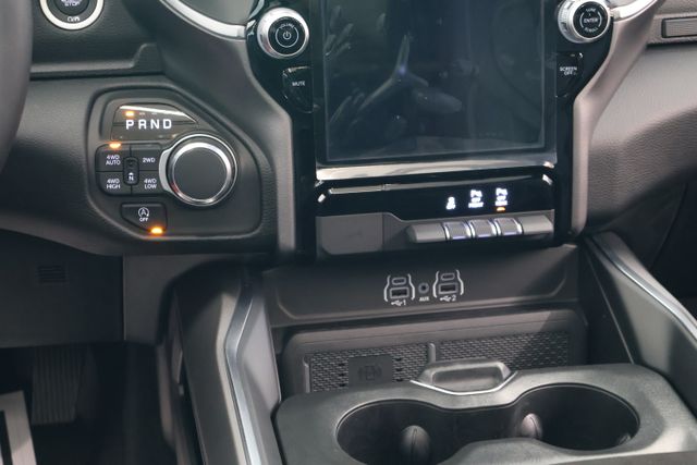 The interior of this Ram 1500 is equally impressive, boasting a 12-inch Touchscreen Display, Configurable Drive Modes, and a Cluster 12-inch TFT Color Display. Stay connected with SiriusXM 360L, Apple CarPlay, and Android Auto, while enjoying the convenience of Remote Tailgate Release, Universal Garage Door Opener, and a 400W Inverter.