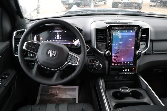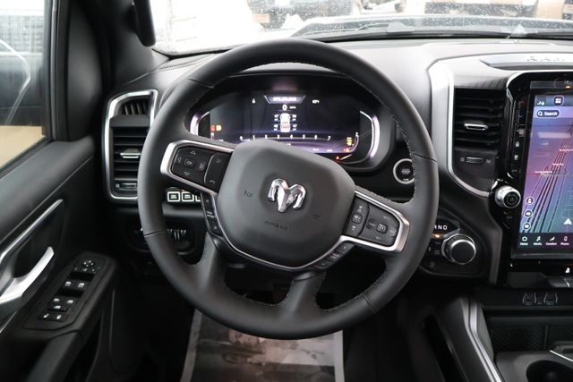 Step inside and experience the refined interior, featuring premium cloth bucket seats, a leather-wrapped steering wheel, and a 12" Cluster Display that puts vital information at your fingertips. The Big Horn Level 2 Equipment Group elevates your driving experience with features like SiriusXM with 360L, GPS Navigation, and a 115V Auxiliary Rear Power Outlet.