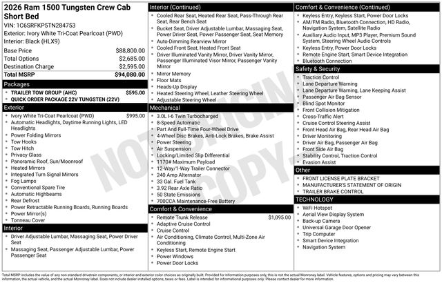 South Fork Chrysler Jeep Dodge Ram is very proud to offer this outstanding-looking 2026 Ram 1500 in Ivory White Tri-Coat Pearlcoat. This vehicle has passed our comprehensive inspection and comes with the following features: 2026 1500 Tungsten
