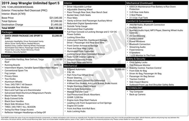 Whether you're tackling rugged terrain or navigating the city streets, this 2019 Jeep Wrangler Unlimited Sport S is the perfect companion. With its impressive 4WD capabilities, advanced technology, and head-turning style, this Wrangler is ready to elevate your driving experience to new heights.
