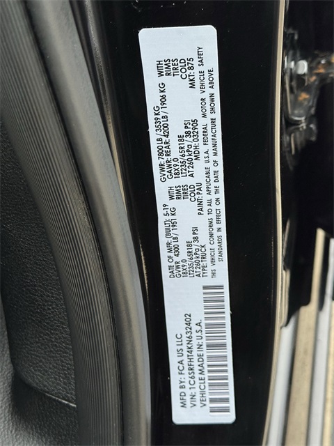 - VIN : 1C6SRFHT4KN632402