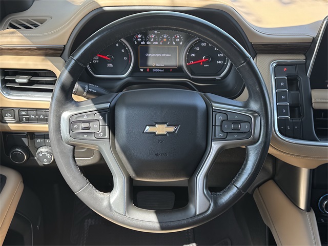 South Fork Chrysler Jeep Dodge Ram is excited to offer this good-looking 2021 Chevrolet Tahoe in Empire Beige Metallic. This vehicle has passed our comprehensive inspection and comes with the following features: Clean CARFAX. Odometer is 31760 miles below market average! Jet Black/Maple Sugar Leather, 12-Way Power Driver & Passenger Seat Adjusters, 1st & 2nd Row Color-Keyed Carpeted Floor Mats, 2 USB Data Ports, 20" x 9" Polished Aluminum Wheels, 3rd Row 60/40 Power-Folding Split-Bench Seat, 3rd row seats: split-bench, Adaptive suspension, Alloy wheels, Apple CarPlay/Android Auto, Auto-Dimming Inside Rear-View Mirror, Auto-leveling suspension, Automatic Heated Steering Wheel, Bose 10-Speaker Centerpoint Surround Audio Sys Ft, Bright Front & Rear Door Sill Plates, Chrome Door Handles w/Body-Color Strip, Chrome Mirror Caps, Color-Keyed Carpeting Floor Covering, Driver & Front Outboard Passenger Airbags, Dual Exhaust System, Enhanced Driver Information Center, Floor Console w/Storage Area, Front & Rear Park Assist, Front Bucket Seats, Hands-Free Rear Power Programmable Liftgate, HD Radio, Heated & Ventilated Driver & Front Passenger Seats, Heated 2nd Row Outboard Seats, Heated door mirrors, Heated Driver & Front Passenger Seats, Heated steering wheel, Illuminated entry, Infotainment Display, Lane Change Alert w/Side Blind Zone Alert, Lane Keep Assist w/Lane Departure Warning, Leather-Wrapped Steering Wheel, LED Daytime Running Lamps, License Plate Front Mounting Package, Magnetic Ride Control Suspension, Memory seat, Memory Settings, Navigation System, Outside Heated Power-Adjustable Mirrors, Power driver seat, Power Liftgate, Power Release 2nd Row Bucket Seats, Power Tilt & Telescopic Steering Column, Power windows, Preferred Equipment Group 1LZ, Premium audio system: Chevrolet Infotainment 3, Radio: Chevrolet Infotainment 3 Premium System, Rear Cross Traffic Alert, Remote keyless entry, Remote Start, Safety Alert Seat, Set of 4 Wheel Locks (LPO), SiriusXM NavTraffic, SiriusXM Radio w/360L, Split folding rear seat, Spoiler, Steering wheel memory, Steering wheel mounted audio controls, Turn signal indicator mirrors, Universal Home Remote, Ventilated front seats.